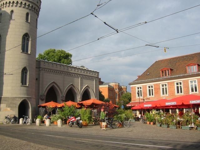 Anschließend marschierten wir zum Nauener Tor und dann, nach einem Großeinkauf im Potsdamer ALDI, fuhren wir mit der Tram zurück nach Pirschheide, wo uns der Transferbus des Campingplatzes abholte und und uns sicher heimfuhr.