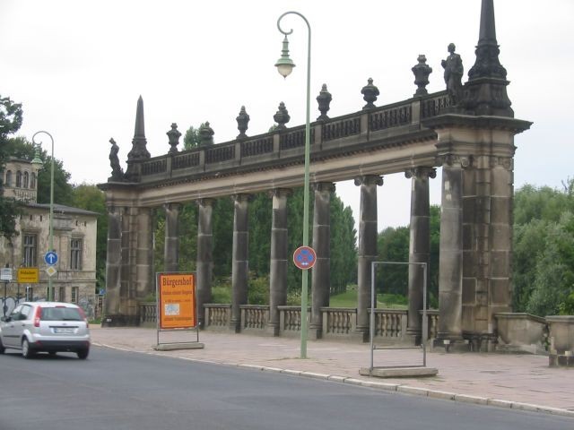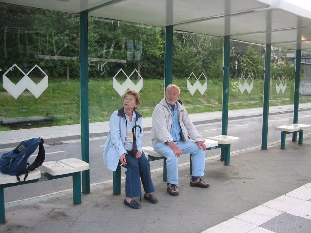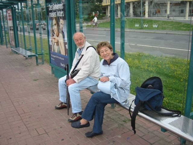 Nach dem Frühstück zum Torbogen, wo diesmal kein Transferbus auf uns wartete. Detlef hielt kurzentschlossen einen PKW mit Zwickauer Kennzeichen an und bat den Fahrer, uns drei doch bis zur Haltestelle Pirschheide mitzunehmen - was der verdutzte Fahrer auch tat.