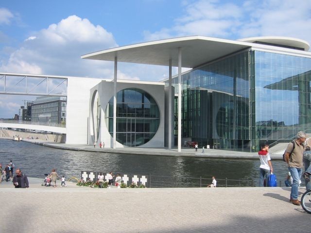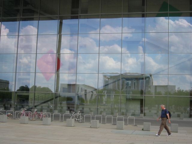 Mit der Tram dann zum Potsdamer Bahnhof. dort in die S-Bahn Linie 7 nach Berlin Friedrichstraße. Wir stiegen aus und besichtigten das Regierungsviertel am Spreebogen. Ich war doch sehr erstaunt, was sich alles hier seit meinem letzen Besuch 1970 ge- und verändert hat. Vor dem Reichstag eine lange Menschenschlange - alle wollen die Kuppel besichtigen - wir heute nicht.