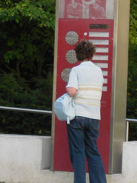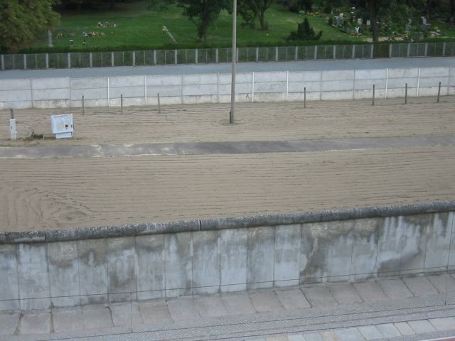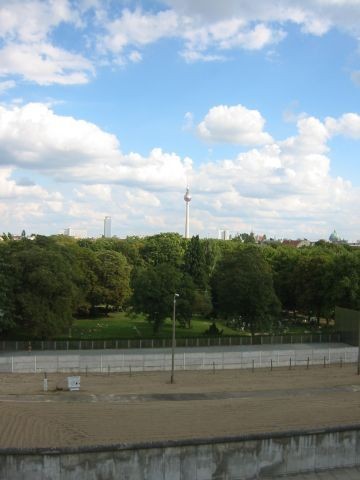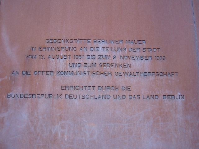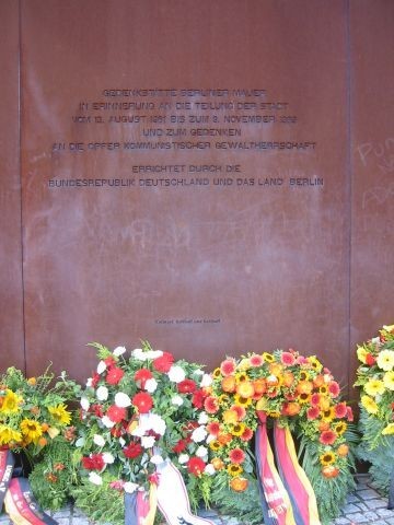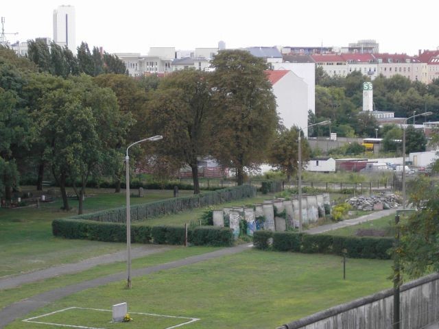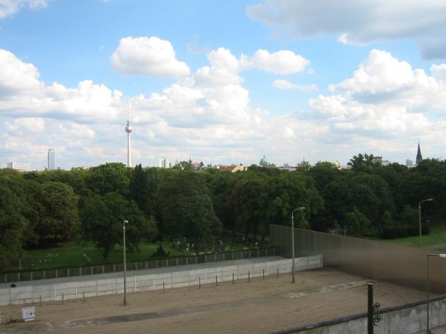 Die Gedenkstätte an der Bernauer Straße mit einem Rest der Berliner Mauer. Wir standen mit sehr gemischten Gefühlen vor der Mahntafel, und auch der Blick von der Aussichtsplattform auf die Berliner Mauer war sehr bedrückend. Die DDR war hier - trotz schönem Wetter und neuen Gebäuden - noch sehr präsent.
