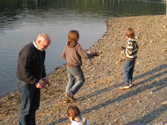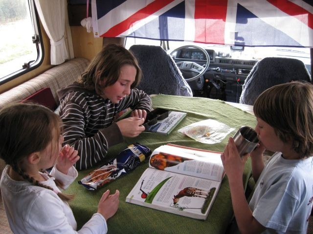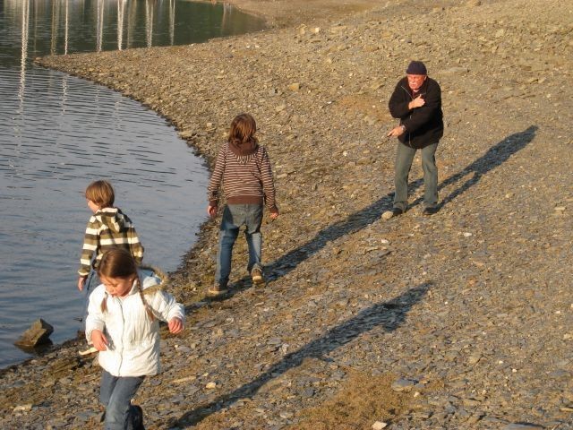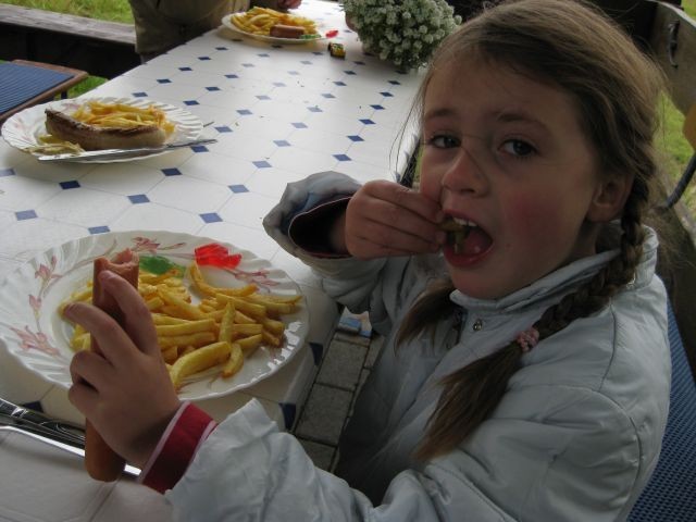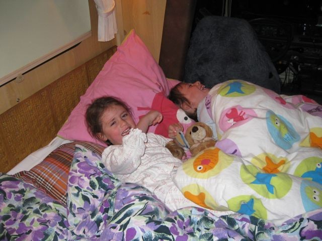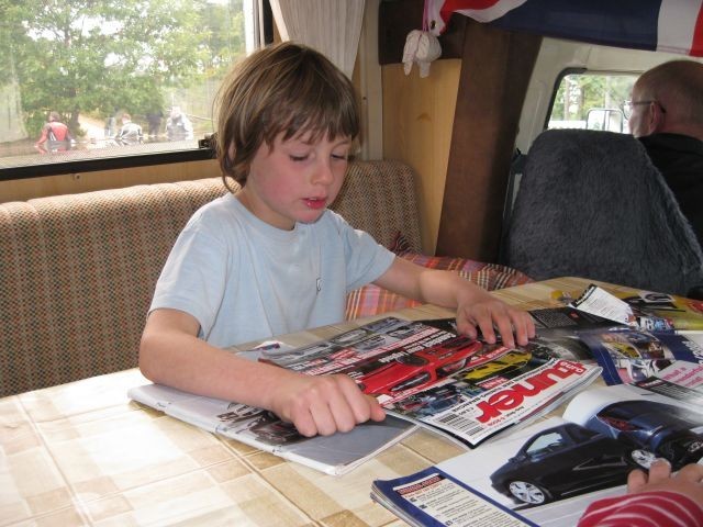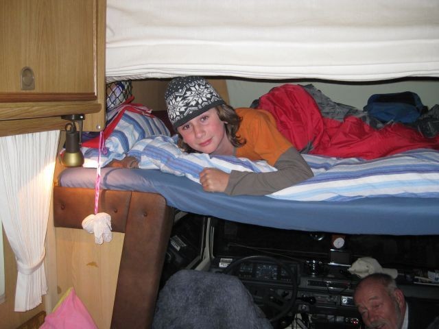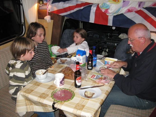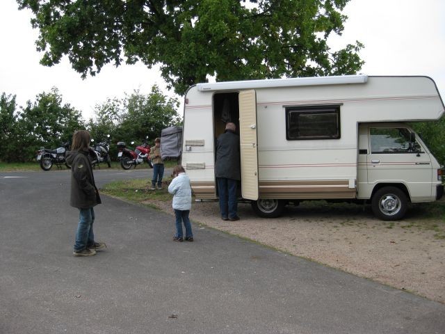 Bei einer Rast ging Nils zielstrebig auf einen Strauch zu und schon hatte er einen dicken grünen Grashüpfer entdeckt, den wir in ein Glas steckten. Wir erreichten unseren Campingplatz rechtzeitig, suchten uns einen Stellplatz und dann erkundeten wir die Gegend: Den Stausee mit vielen Segelbooten, die Gartenzwerge und natürlich das Waschhaus. Dann war auch schon Abendbrotzeit. Anschließend wurde noch gespielt und viel Unsinn gemacht. Dann krabbelte jeder in sein Bett und wir verbrachten eine erste ruhige Nacht.