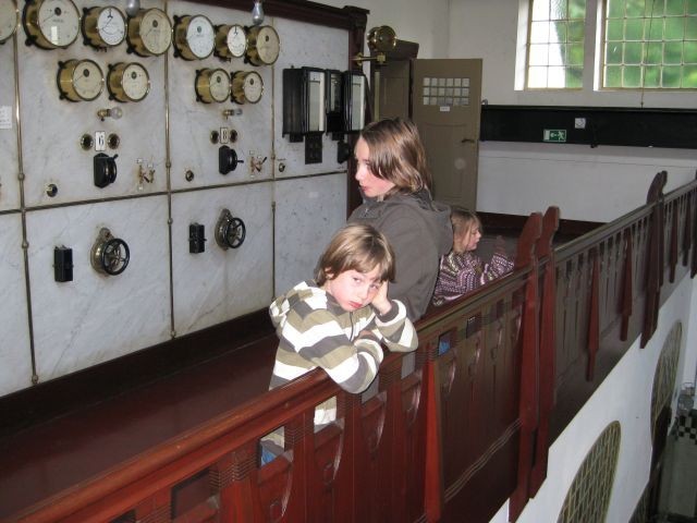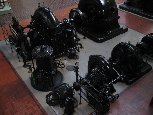 Im Museum standen Elektrogeräte aus den Zwanzigern neben recht modern aussehenden Sachen. Die schwarzen Turbinen sahen in der weißen, im Jugendstil gebauten Halle sehr dekorativ aus.
