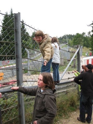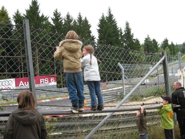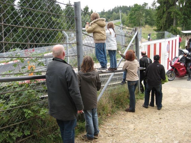 Als wir alle satt waren zog es uns magisch zum Nürburgring. Detlef wollte sich seinen Wunsch erfüllen, nämlich mit dem WOMO und uns eine Runde auf der Nordschleife zu fahren. Wir hatten schon 20 € bezahlt und standen schon in der Reihe der wartenden Autos, als uns ein Securitymann freundlich herauswinkte und uns sagte, dass es wegen fehlender Sicherheitsgurte für die Enkel und auch sonst leider nicht angehe unsere Runde zu drehen - schade!