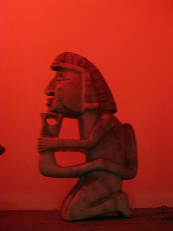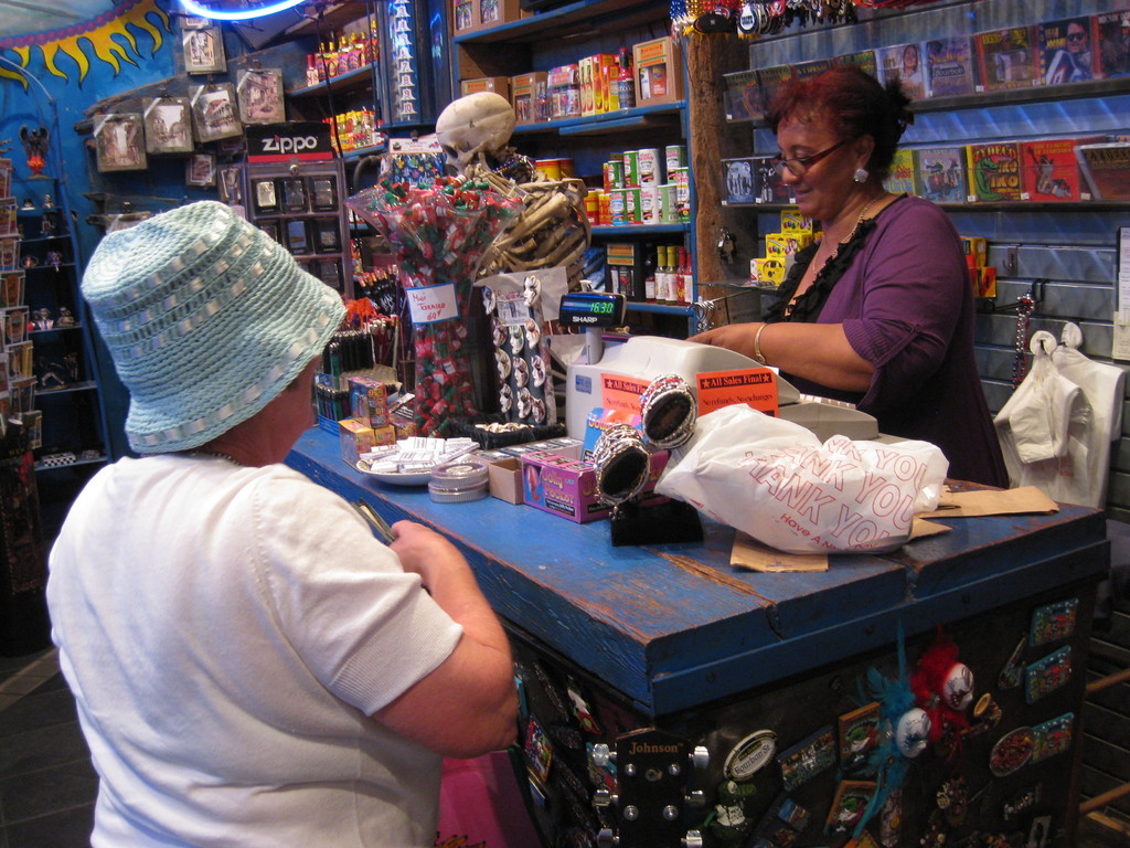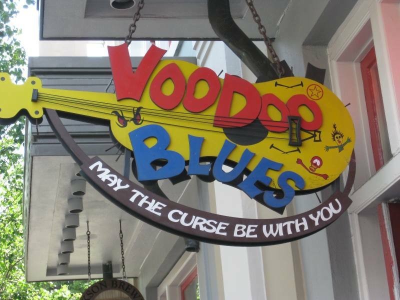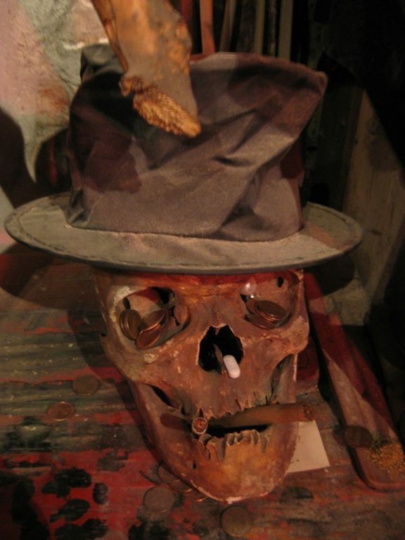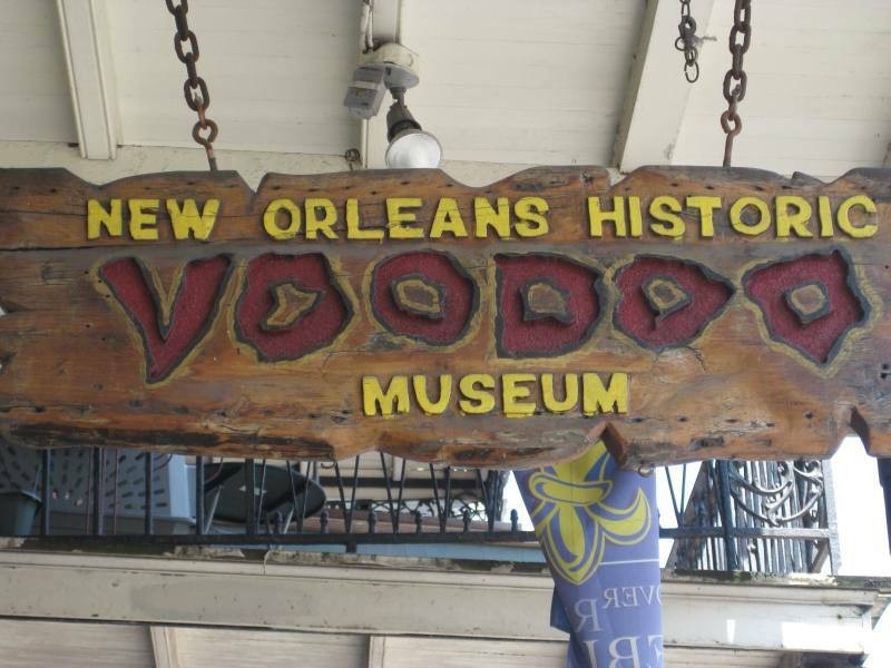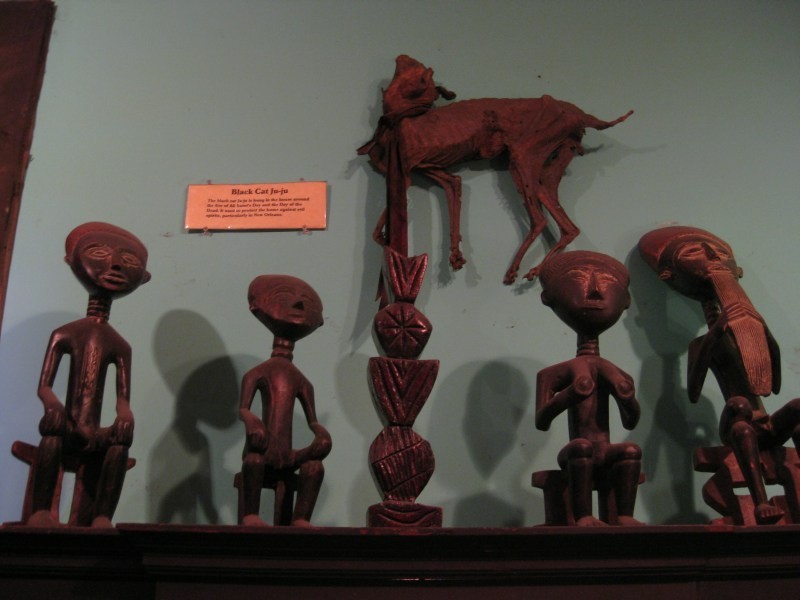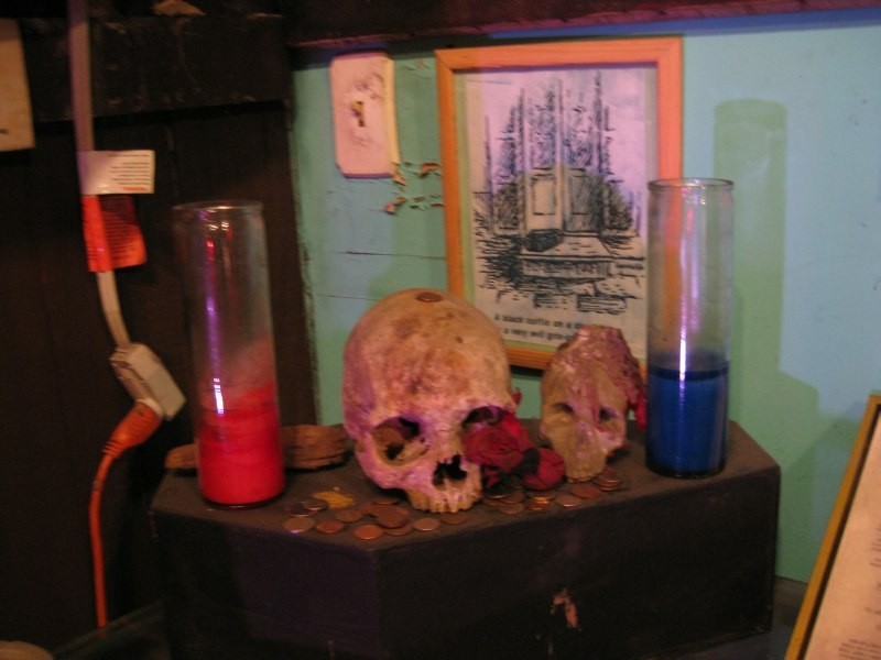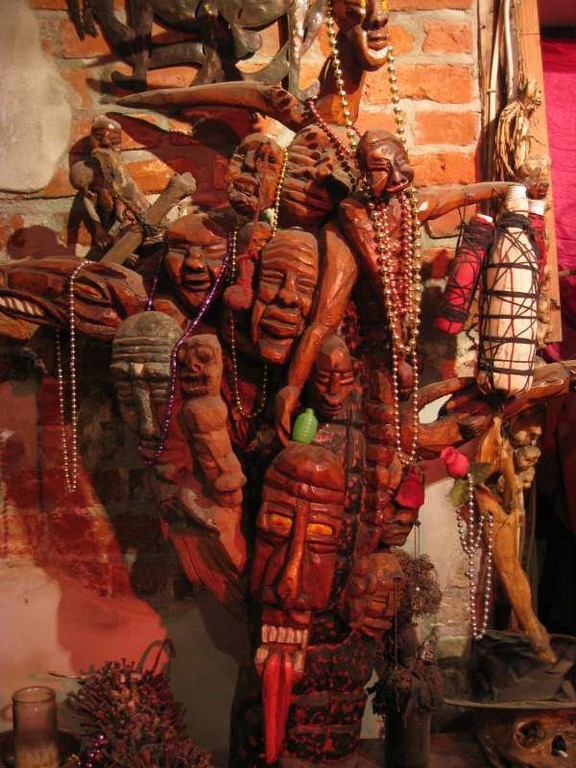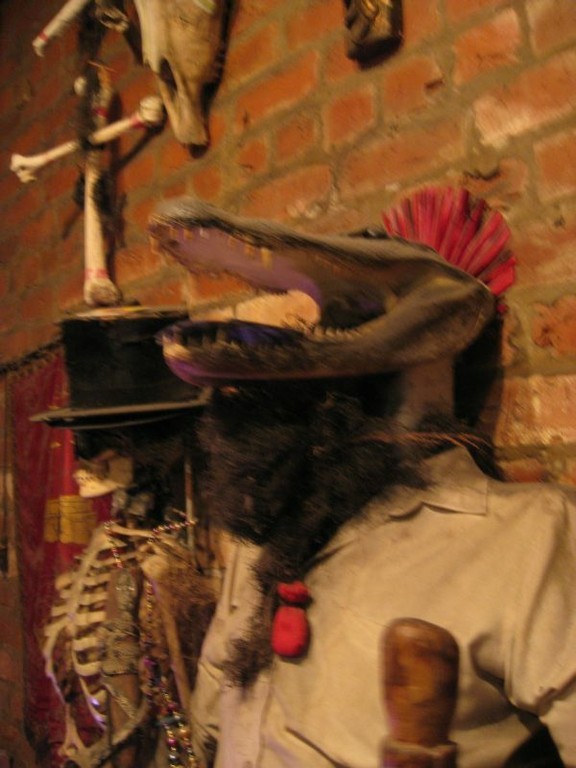 Ausgecheckt, dann auf einen Parkplatz am Fluss. Von dort zu Fuß in die Bourbon Street zum „Voodoo Museum“. Für 5 Dollar sahen wir in magische Farben getaucht, fast alle Devotionalien, die ein richtiger Voodoo Anhänger so braucht und liebt.