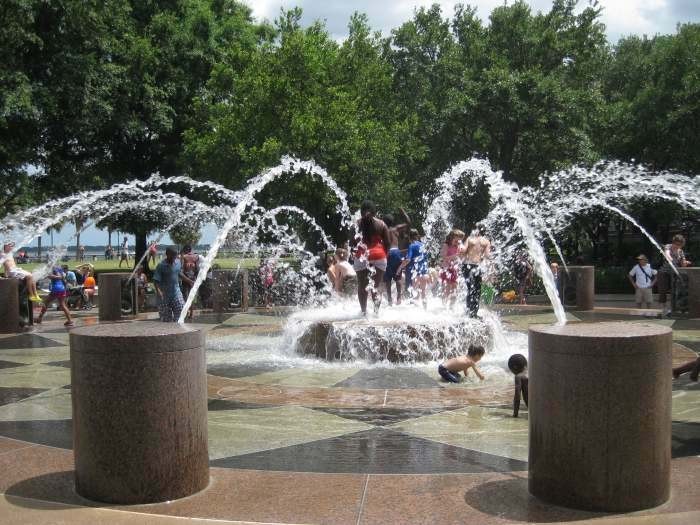 Bei herrlichem Fotowetter – blauer Himmel, weiße Wolken – marschierten wir dann durch die schöne Altstadt von Charleston, bei der man sehr deutlich die englischen Wurzeln sehen kann. Viele schöne, alte Antebellumhäuser mit schmucken Fassaden, schönen Blumen vor den Fenstern wurden gebührend bewundert und fotografiert. Wir erreichten den Fluss Cooper und spazierten gemächlich auf einer schönen, gepflasterten Promenade zurück Richtung Market Place. Irgendwie sah Dieter bei diesem Riverwalk den Rhein mit dem Dom vor seinem inneren Auge, aber der Cooper ist doch um einiges breiter als Vater Rhein…..
