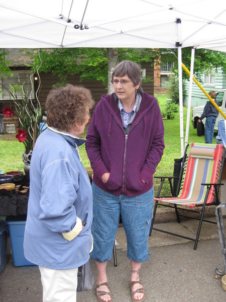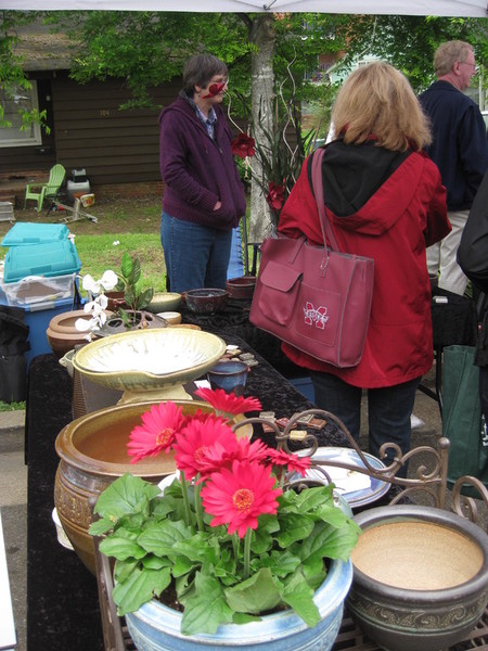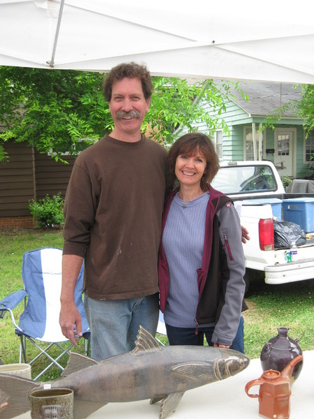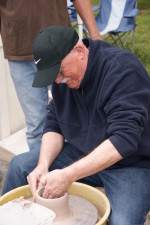 Rast machten wir an Michelles Stand, und ihr Nachbar - Robert Long - wies Dieter ein in die schwierige Kunst des Töpferns...