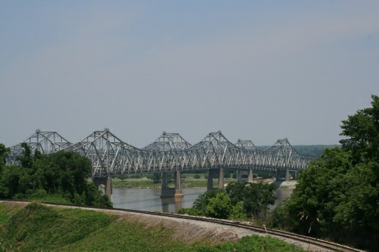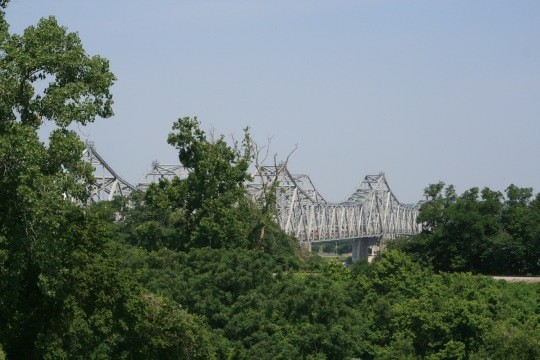 Nun ging es endgültig auf den Parkway, den wir bis zur letzten Meile bis Natchez fuhren. Ankunft an unserem Hotel „Comfort Suites“ gegen 20 Uhr. Wir checkten ein, bekamen ein Zimmer mit Blick auf den Parkplatz. Dieter intervenierte – so bekamen wir ein Zimmer mit fantastischem Ausblick auf den „Ole Man River“ und die Brücke.