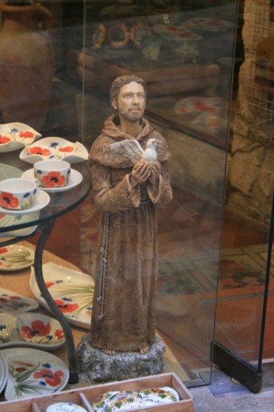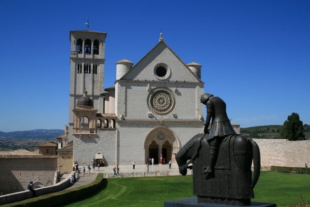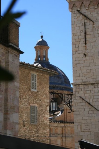 Die Nacht in Gubbio verlief ohne Störungen - wir waren ja fast alleine da. Abschied von unserem Patron und dann fuhren wir nach Assisi. Wir fanden einen Parkplatz auf einem privaten Grundstück, wo uns die Besitzerin erlaubte, eine Stunde zu parken - daraus wurden immerhin drei Stunden.