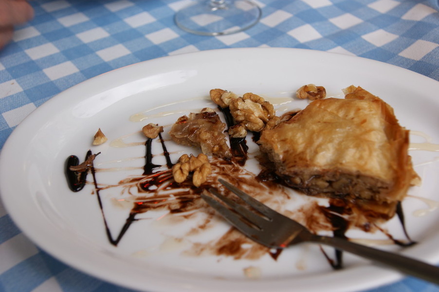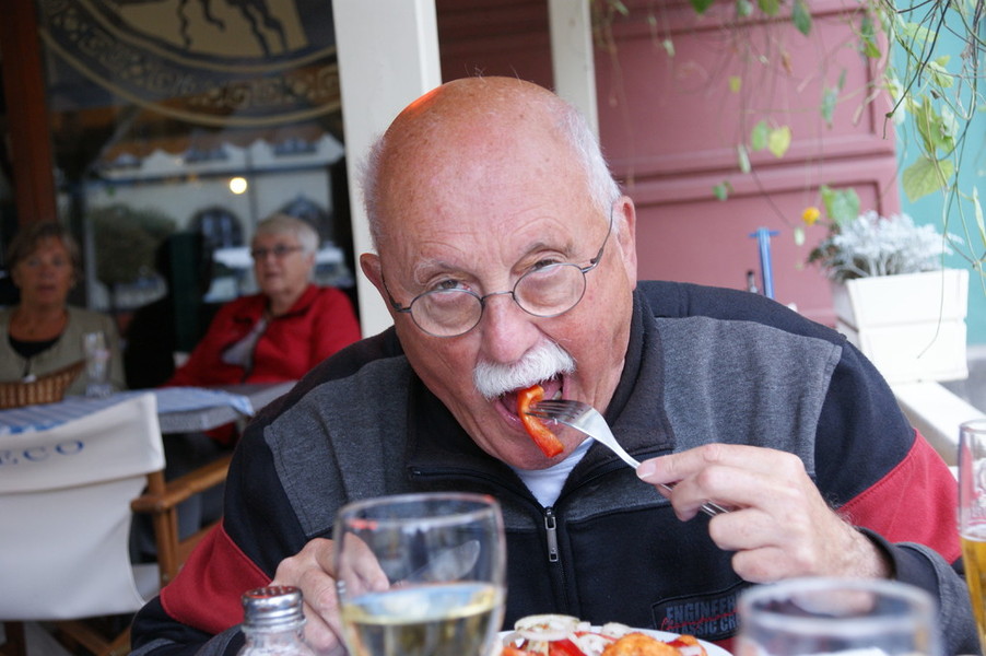 Auch das leibliche Wohl kam nicht zu kurz, bei einem Griechen am Marktplatz kehrten wir ein und dann begann es wieder heimlich, still und leise zu regnen. Der Regen steigerte sich, so dass wir es vorzogen, wieder mit der Tram 33+ zurück zu unserem WOMO zu fahren.