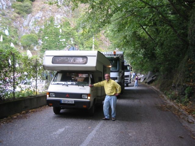 Über die Autobahn weiter über Genua, Savona bis Cerriale zu unserem CP. Bei Nieselregen wies uns ein Faktotum a la Quasimodo einen Platz direkt neben dem Waschhaus zu.