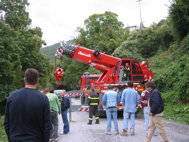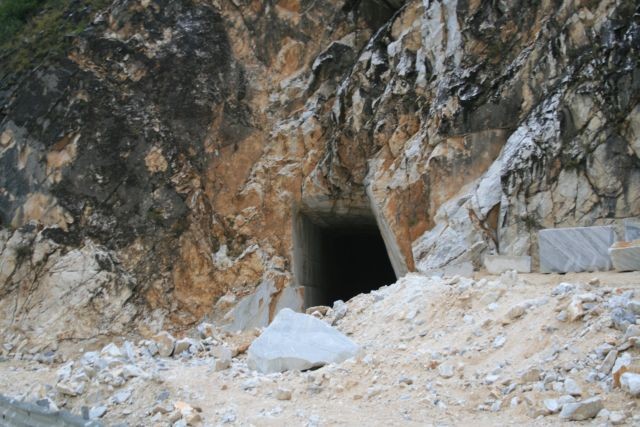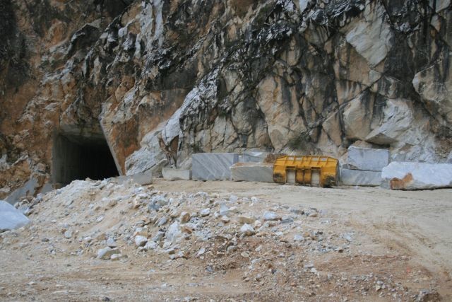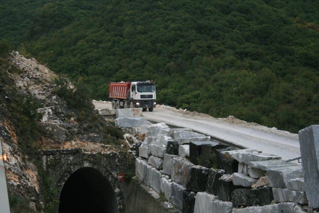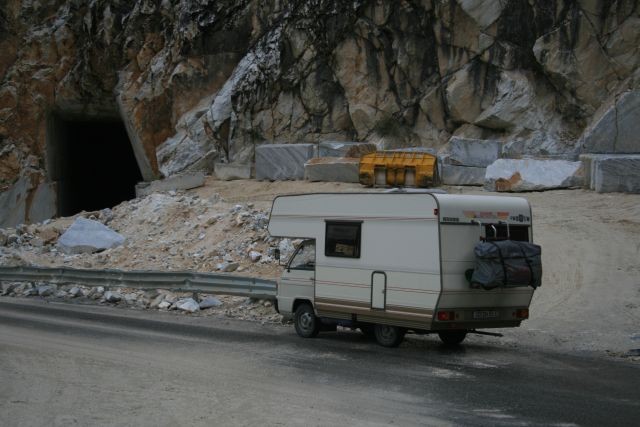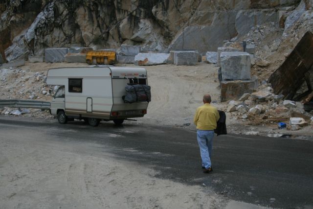 Nach einem kurzen Strandgang fuhren wir bei Sonnenschein Richtung Carrara. Auf halber Strecke zu den Marmorbrüchen gab es einen Stau - verursacht durch einen Unfall. Ein Jeep war von der Straße abgekommen und umgekippt. Er wurde nach vielem Palaver von der Feuerwehr geborgen. Dauer der Aktion ca. 1,5 Stunden.