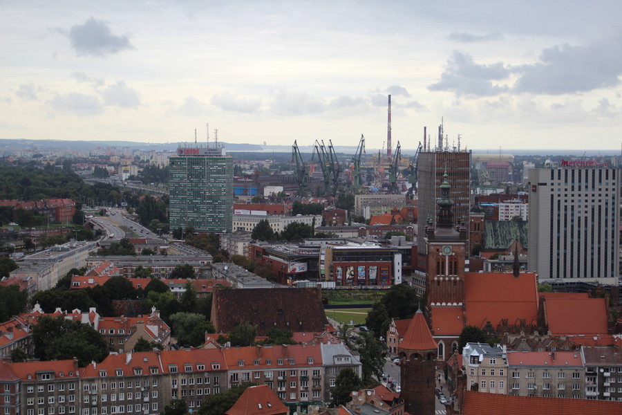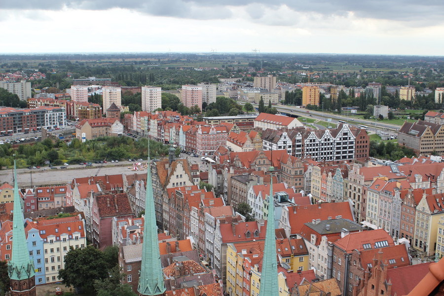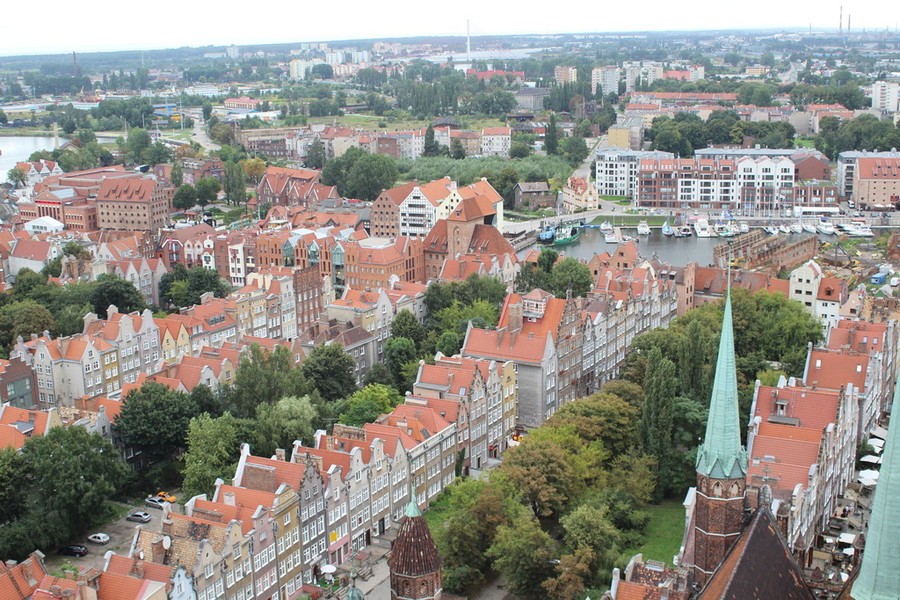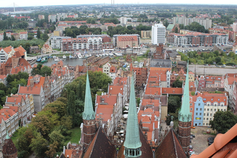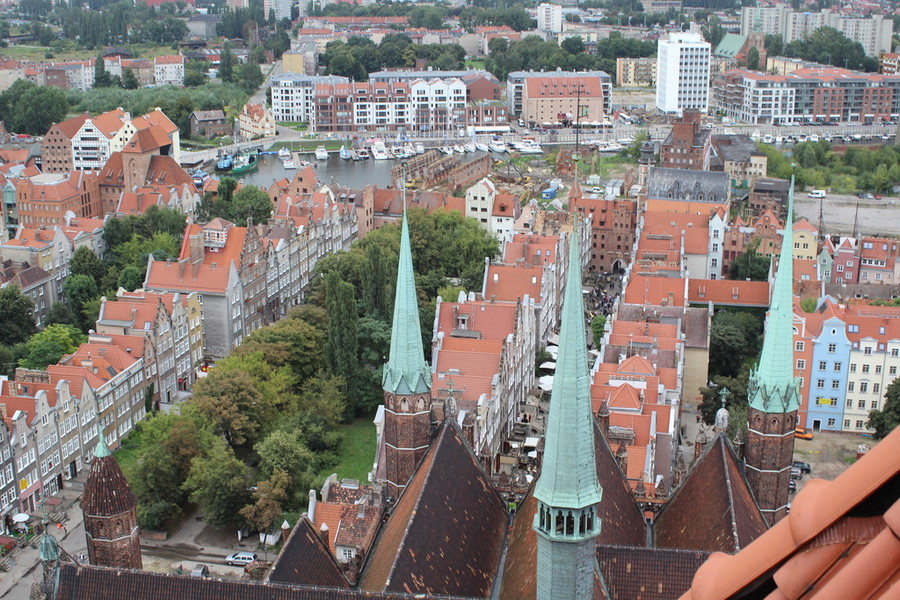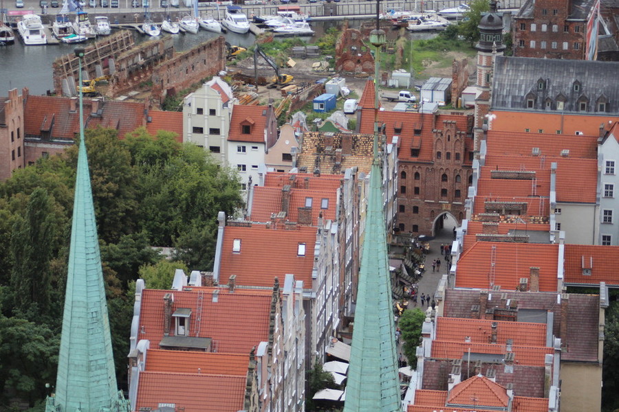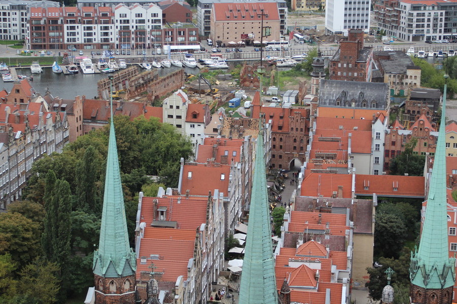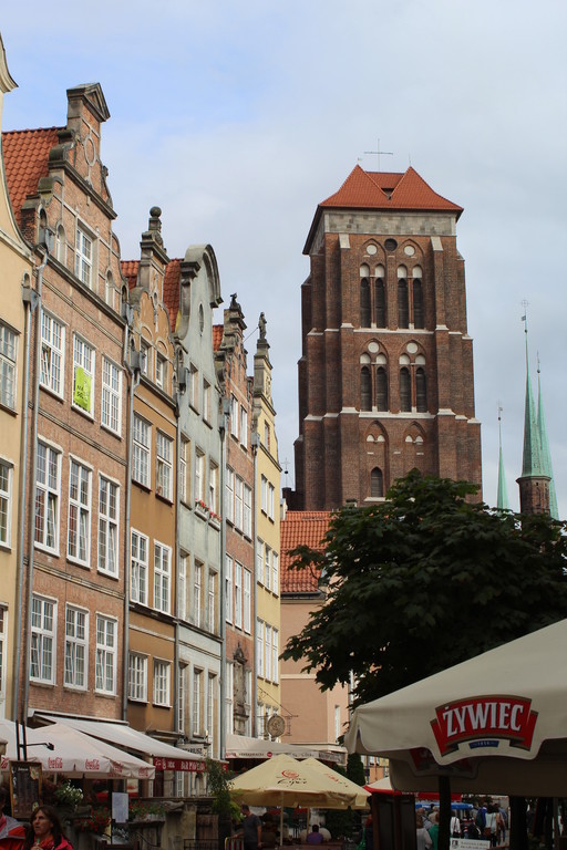 Vom Bahnhof marschierten wir am Hotel Hevelius vorbei zur Katharinenkirche, rasteten an der Großen Mühle, gingen weiter vorbei an der Markthalle und dem Stockturm zur Marienkirche.