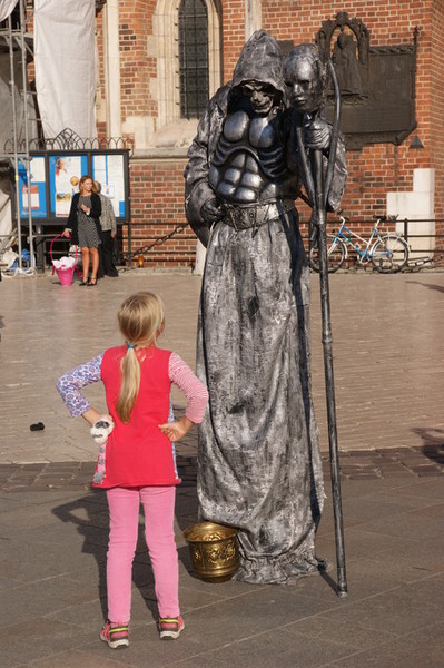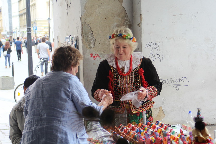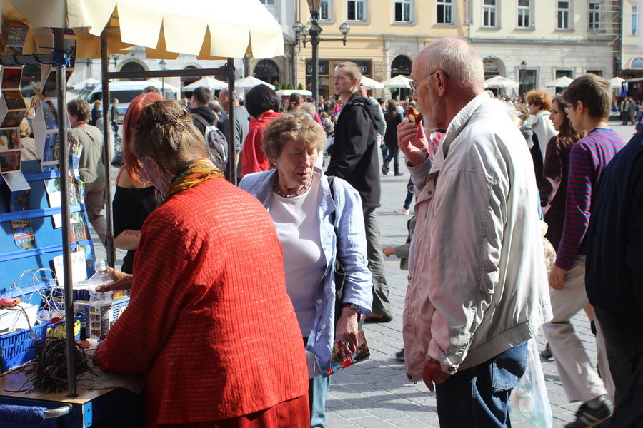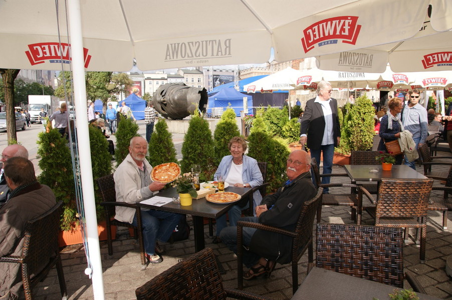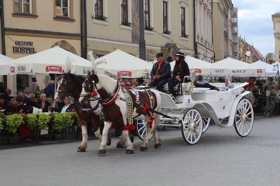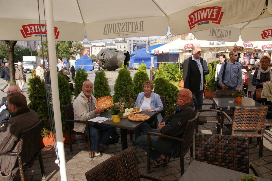 In der Marienkirche wurde am laufenden Bande geheiratet, die Hochzeitsgesellschaften stiegen danach in die Droschken und umrundeten den Hauptmarkt. Blumenstände, Musiker, Gaukler und Souvenirverkäufer rundeten das Bild auf dem sonnigen Platz ab. Wir marschierten durch die Ul. Florianzka, nahmen im Jugendstil-Cafe „Jama Michalika“ einen leckeren Kaffee zu uns, gingen durch das im 14.Jahrhundert erbaute Florianstor, bewunderten die Gemälde der Amateurmaler, die an der Stadtmauer hingen und dann war es auch schon wieder an der Zeit, uns auf den Rückweg zur Haltestelle der Tram zu begeben. Sie brachte uns sicher zurück zur Endhaltestelle.