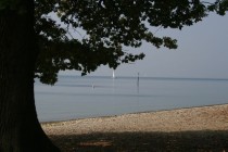 Wir parkten auf einem großen Parkplatz und nach Zahlung von einem Schweizer Fränkli konnten wir dann den Wasserfall besichtigen. Der Rhein donnert laut und rauschend dicht an den verschiedenen Aussichtspunkten vorbei. Ich erstand ein Original Schweizer Offiziersmesser der Marke "Handyman". Nach einer Rast ging es dann weiter zum Bodensee. Am Schweizer Ufer war wenig vom See zu sehen, besser wurde es erst am deutschen Ufer.
