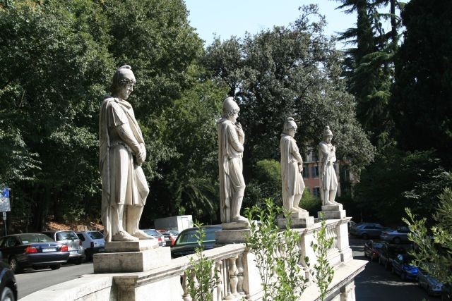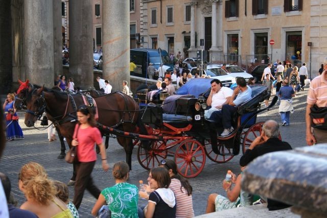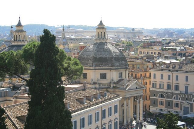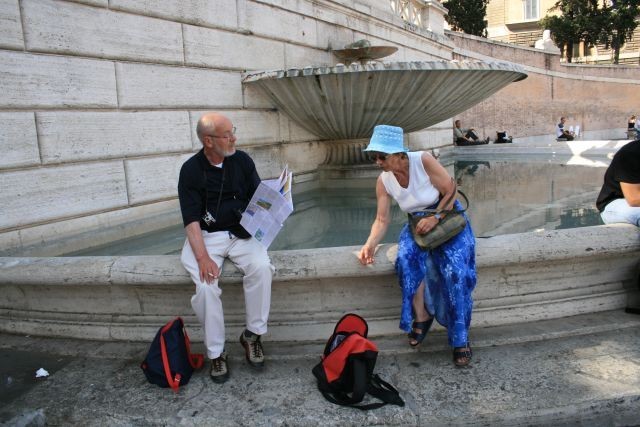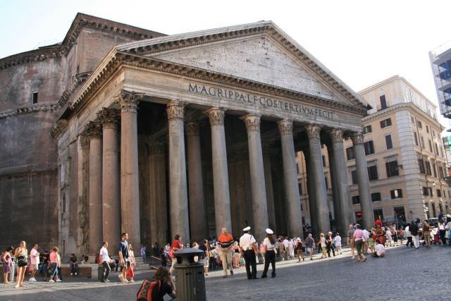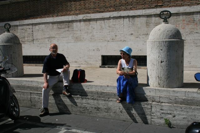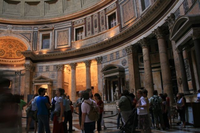 Wir begannen unsere Exkursion mit der Engelsburg. Weiter ging es am Tiber zum Augustusgrab weiter zur Piazza di Popolo. Von dort durch die Via del Corso in Richtung Piazza Colonna. Das Panteon nahm uns dann mit seinem riesigen, oben offenen Gewölbe in seinen Bann, zumal just eine Messe gefeiert wurde.