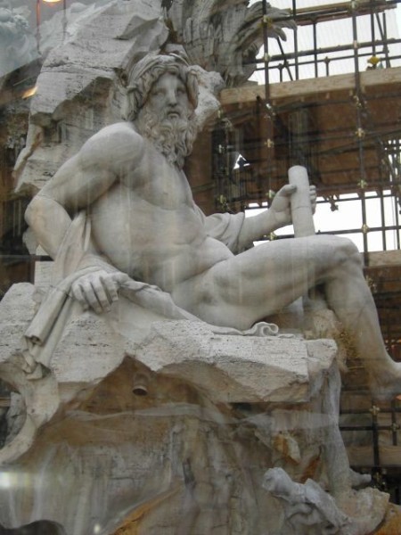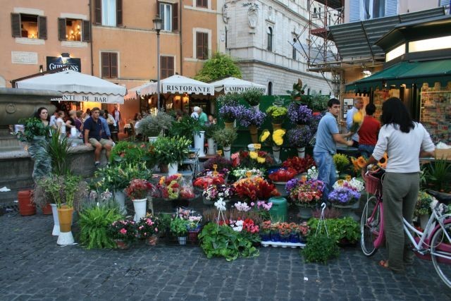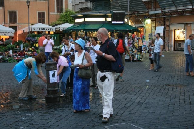 Dann ging es weiter im Abendlicht zum Campo di Fiori, einem Blumenmarkt. Der wunderschöne Brunnen von Bernini auf der Piazza Navona war leider eingerüstet.