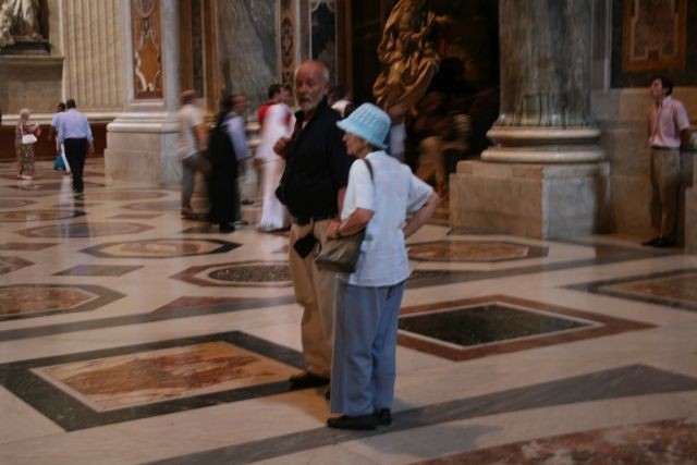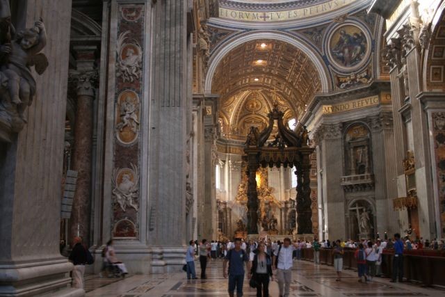 Das Erstaunlichste für mich: Man durfte nach Herzenslust im Innern des Domes fotografieren - was ich auch zur Genüge tat. Viele Seitenaltäre - so groß wie in vielen Domen der Hauptaltar - die berühmte Pieta von Michelangelo, das Grab von Johannes XXIII. und gewaltige Gemälde barocker Künstler. Die vielen Touristen verliefen sich im Innern der Kirche, es herrschte trotz allem eine feierliche Stille, sanft unterbrochen vom Klicken der Kameras.