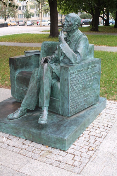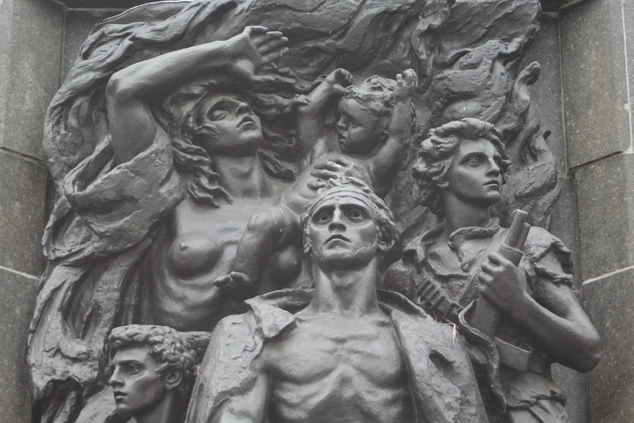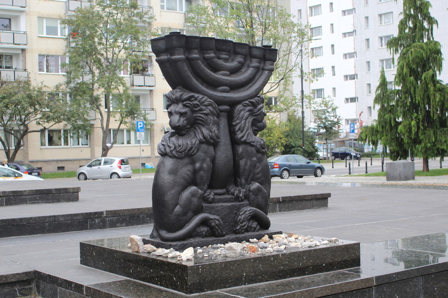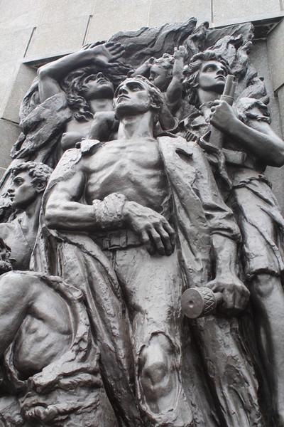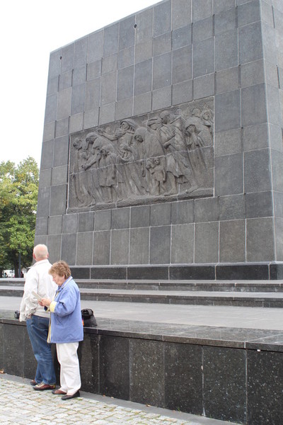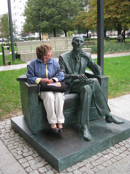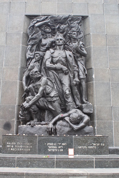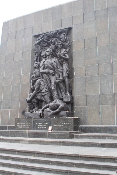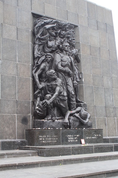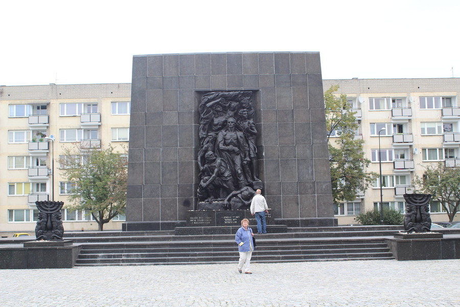 In der Rezeption kauften wir uns eine Tageskarte für Bus und Straßenbahn für 15 Zloty. Dann bestellte der Patron ein Taxi, das uns die 22 Kilometer vom Campingplatz bis zum Ghetto Denkmal in Warschau fuhr.