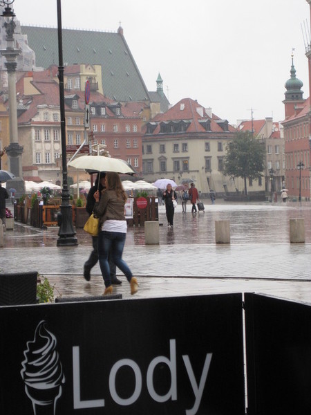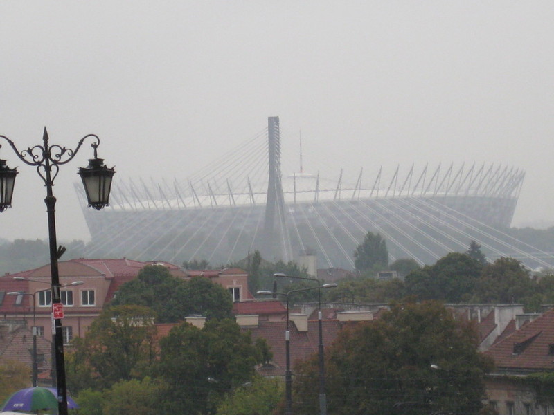 Wir stiegen aus und dann begann es leise aber unaufhörlich zu regnen, zuerst ein feiner Sprühregen, der sich aber peu a peu zu einem echten Warschauer Land- bzw. Stadtregen entwickelte.