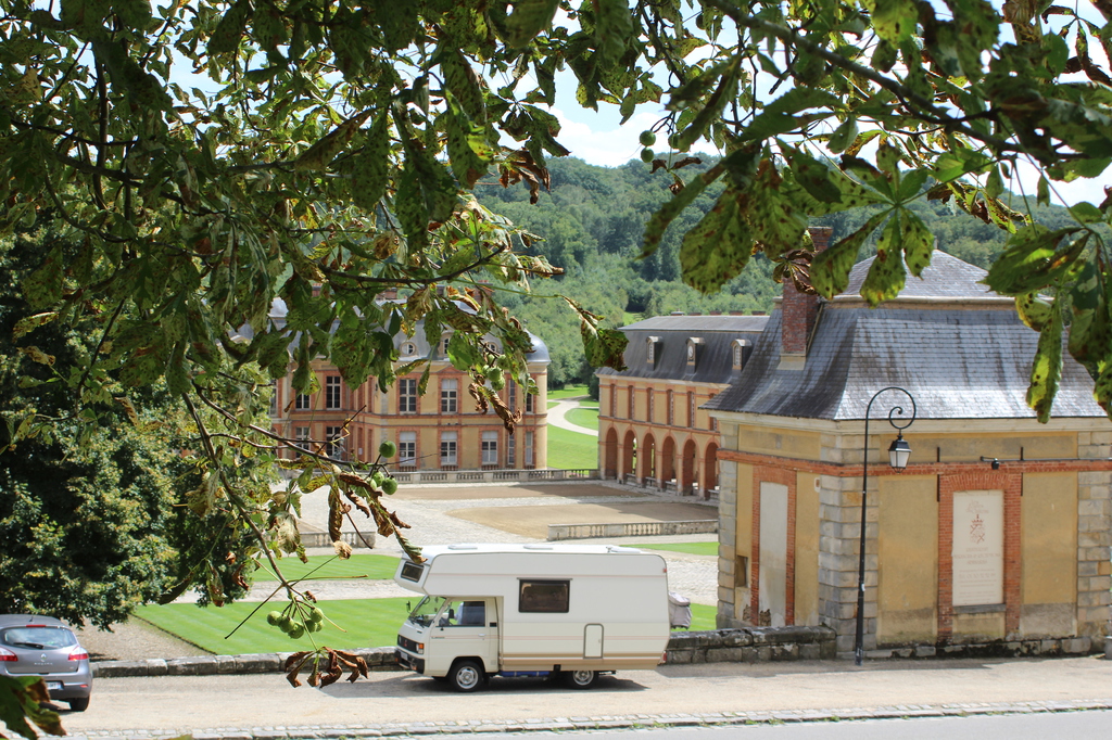 Von Versailles war es nur ein Katzensprung zum Chateau Dompierre-en-Yvelines. Wir parkten das WOMO direkt vor der Mauer an der Straße mit wunderschönem Blick auf das Chateau.