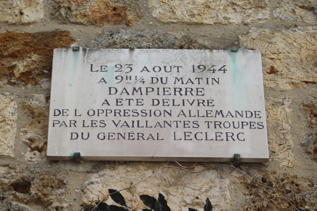 Auch hier in dem kleinen, verschlafenen Dorf haben die Weltkriege I und II ihre Spuren hinterlassen. Auf einer Tafel ist notiert, dass Dompierre-en-Yvelines am 23. August 1944 um 9:15 Uhr von der deutschen Besatzung durch die Truppen General Leclercs befreit worden ist.