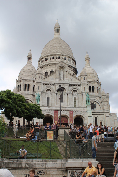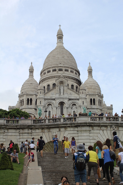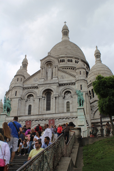 Dann sahen wir sie: die strahlend weiße Basilika Sacre-Coeur. Das neobyzantinische Kuppelgebirge auf dem Montmartre-Hügel ist das Motiv, das am meisten in Paris fotografiert wird.