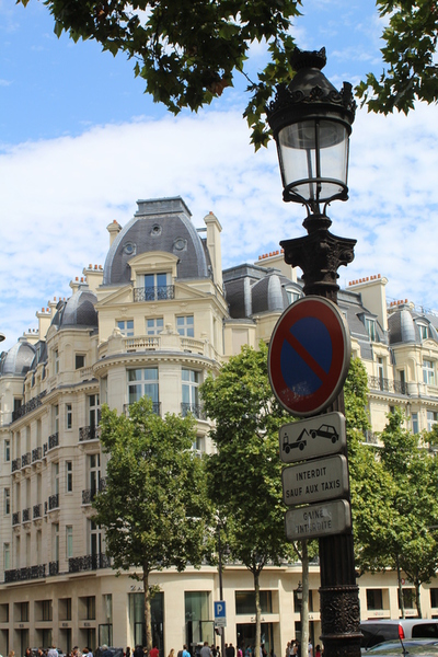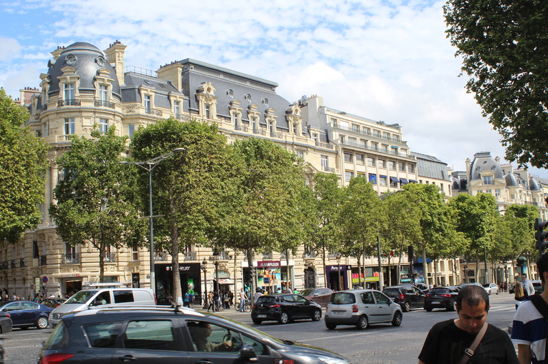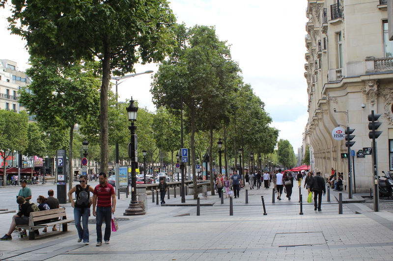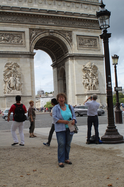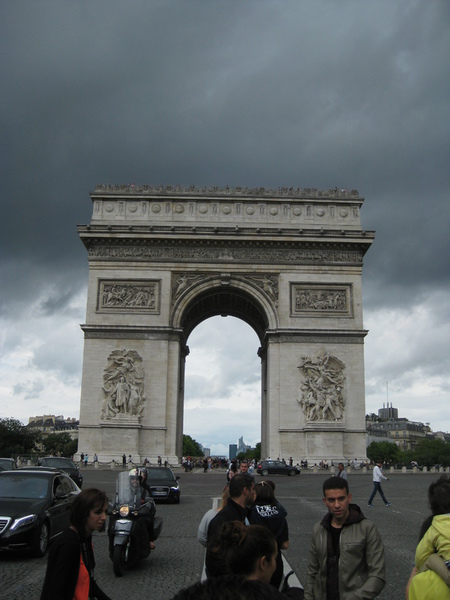 Mit der S-Bahn RER A1 ging es bis La Defence, umsteigen in die M2 bis L'Arc de Triomphe. Als wir aus der Metro ans Tageslicht kamen - fiel wieder mal leichter Sprühregen, der aber schnell aufhörte. Die Wolkendecke riss auf und die Sonne kam sogar hervor so dass Dieter einige Fotos der Champs Elysees machen konnte.
