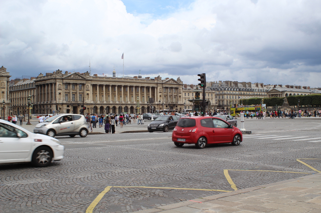 Wir erreichten auch tatsächlich den riesigen Place de la Concorde, konnten ihn dank des sonntäglich mäßigen Verkehrs auch heil überqueren.