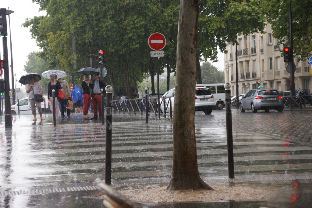 Gegen 12 Uhr marschierten wir zum Bahnhof Maisons Laffitte, benutzten unsere Dauerkarten (ein freundlicher Bahnbeamter zeigte uns die Handhabung), bestiegen den RER A1 Richtung Paris. Ausstieg Charles de Gaulle Etoile. Als wir oben waren - ja, was denn - regnete es wie Sau.