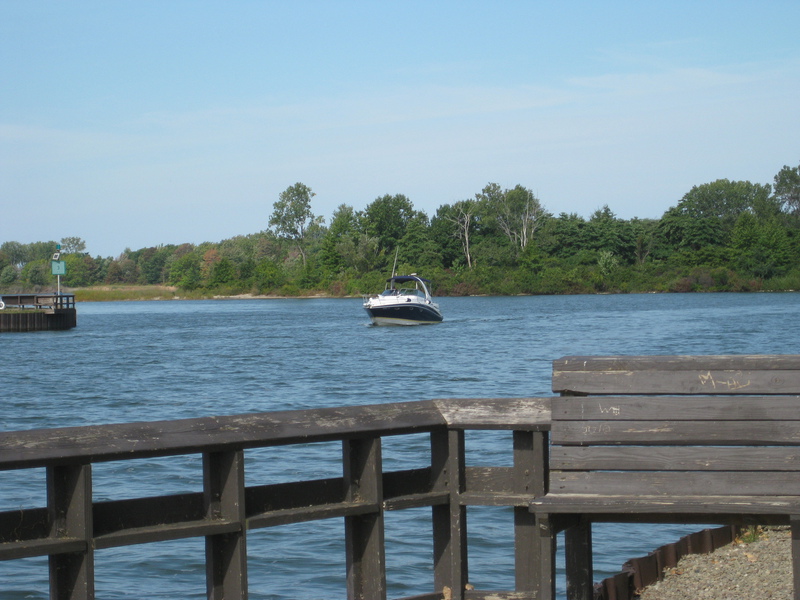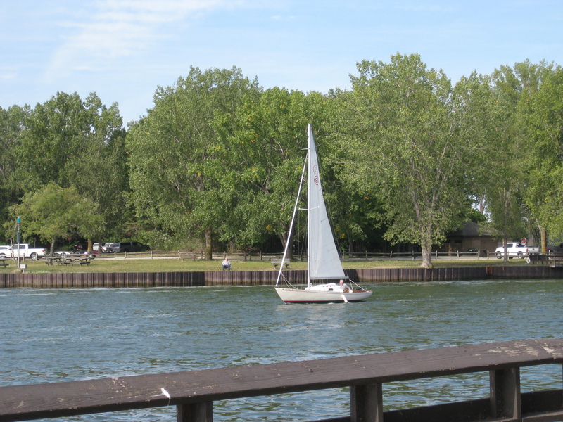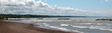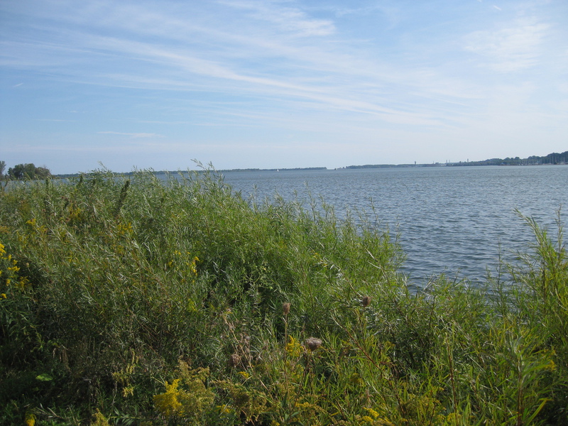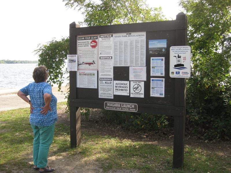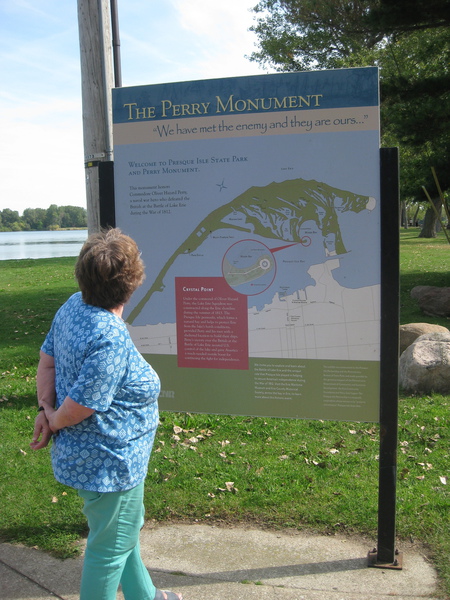 Dann fuhren wir einige Meilen zum "Presque Island National State Park". Er liegt auf einer Halbinsel direkt Erie gegenüber. Wir fuhren schön langsam - 25 Meilen waren erlaubt - hielten an verschiedenen Stellen an, u.a. am Perry Monument, das an den Kapitän erinnerte, dessen Ausspruch "Don't give up the ship" in die Annalen Amerikas einging, und Dieter konnte seine Fotos machen. Überall war es sauber, die Bänke und Tische hatten sicherlich schon bessere Tage gesehen, aber alles machte einen "gemütlichen" Eindruck. Fußgänger, Radfahrer und Autofahrer nehmen aufeinander Rücksicht. Die Zugänge zum Strand des Lake Erie luden zum Verweilen ein - man fühlte sich an Strände der Ostsee erinnert, zumal das Wetter immer besser wurde. Als wir uns von der Halbinsel verabschiedeten, zeigte das Autothermometer schöne 27°C an - da kann man nicht meckern.