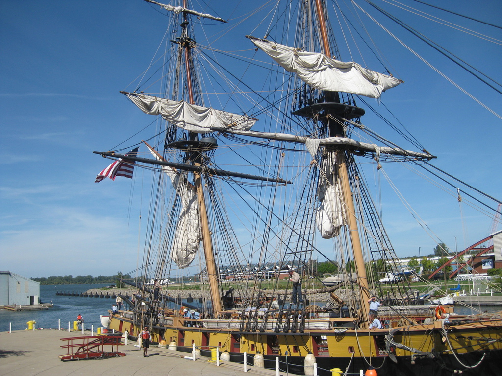 Als Senioren löhnten wir jeder $ 8, um alle maritimen Dinge anzuschauen. Höhepunkt unseres Besuches war eine Führung auf der "US Brig Niagara" einem Nachbau der historischen Brigg von 1799. Unser Führer - ein älterer Herr - führte uns auch ins Unterdeck und erklärte uns Landratten alle seemännischen Begriffe und Gegenstände. Es war ein schönes Erlebnis - die Sonne schien, eine steife Brise wehte, und die historische US-Flagge von 1799 flatterte vom Mast.