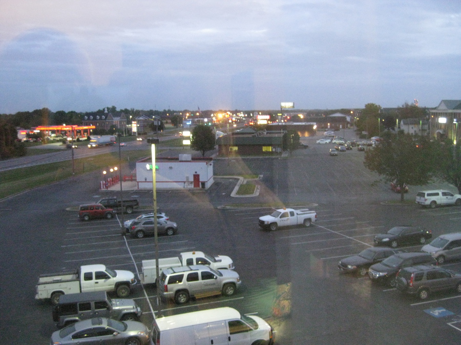 Nach gefahrenen 345 km checkten wir gegen 4:45 pm in unserem Comfort Inn Hotel in Martinsburg ein, bekamen Room 426, Von oben haben wir einen schönen Ausblick auf das Waffle House, Parkplätze und viele Straßen, auf denen es richtig busy ist.